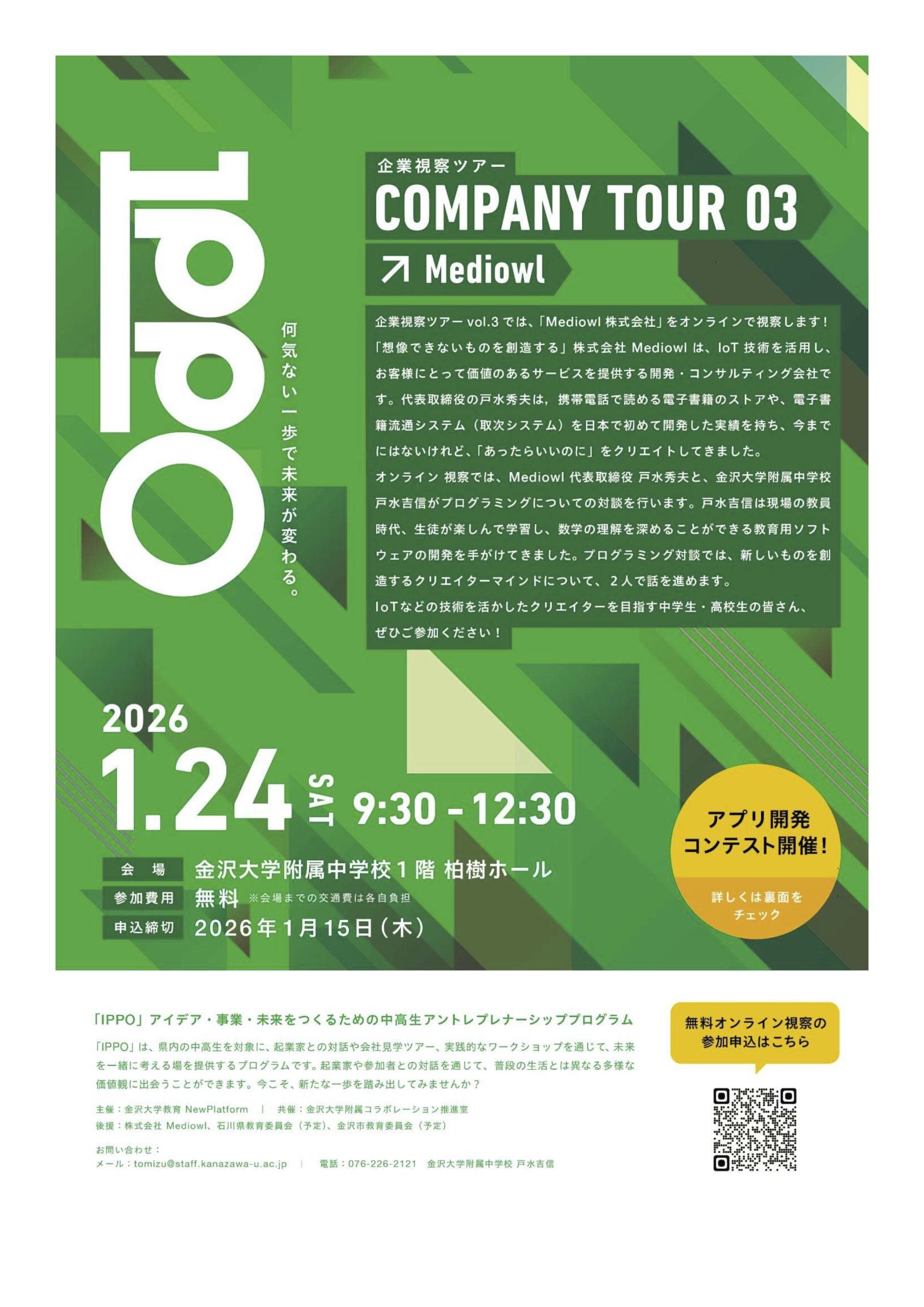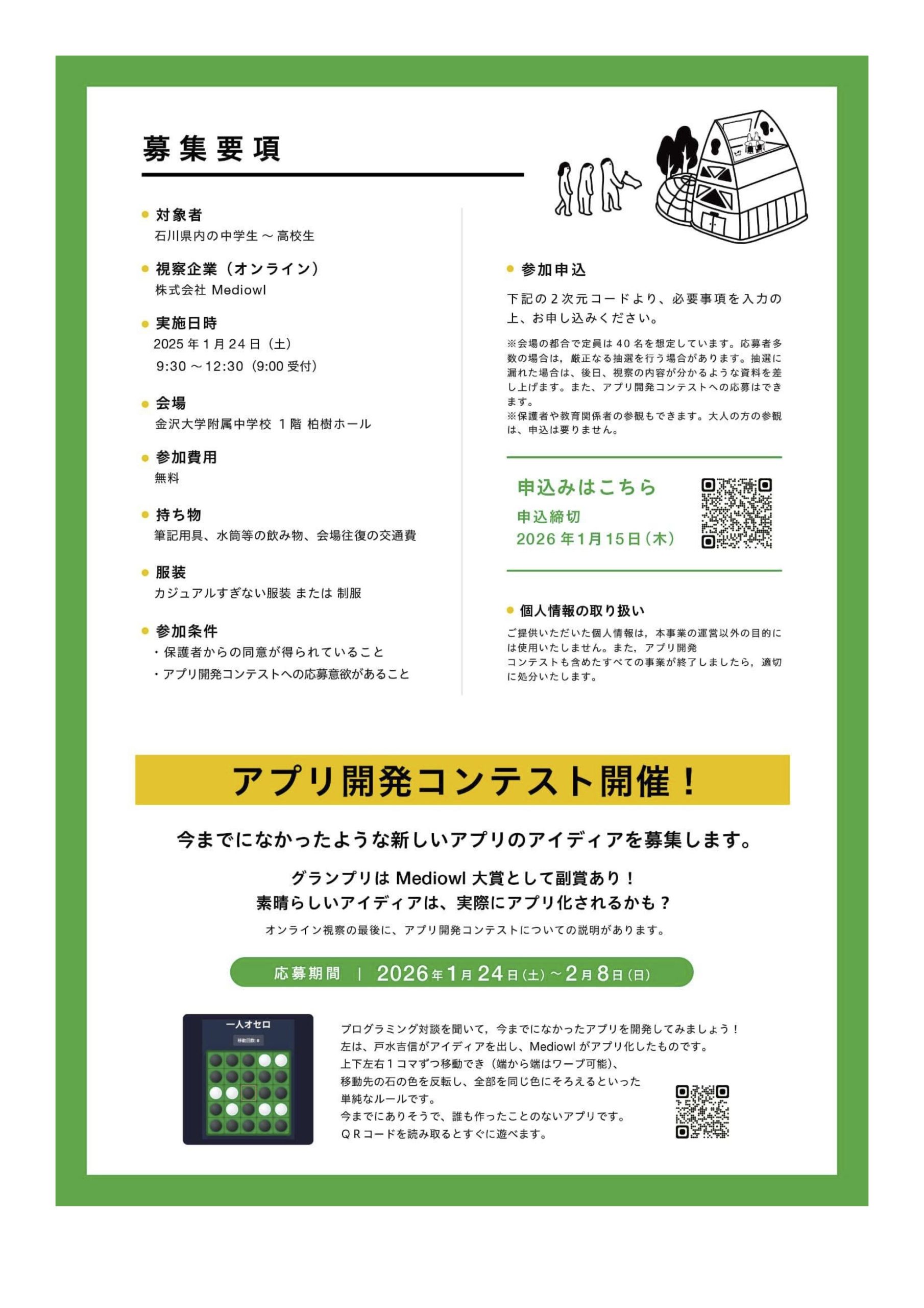 株式会社Mediowl、石川県教育委員会(申請中)、金沢市教育委員会(申請中)